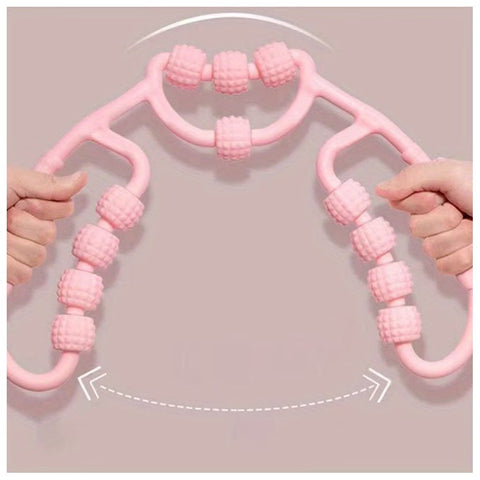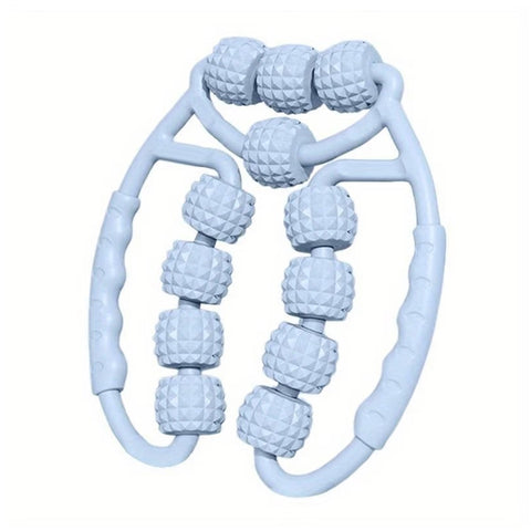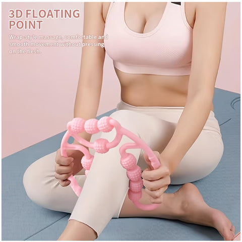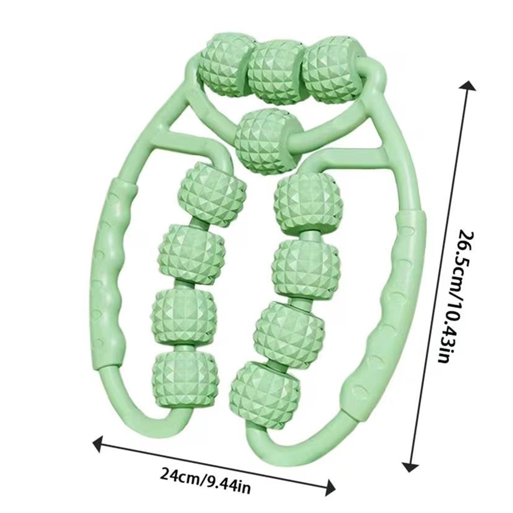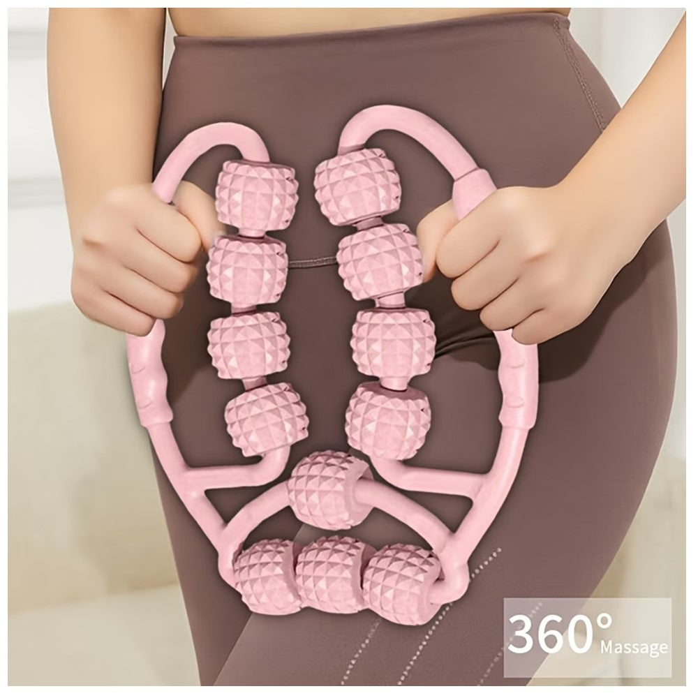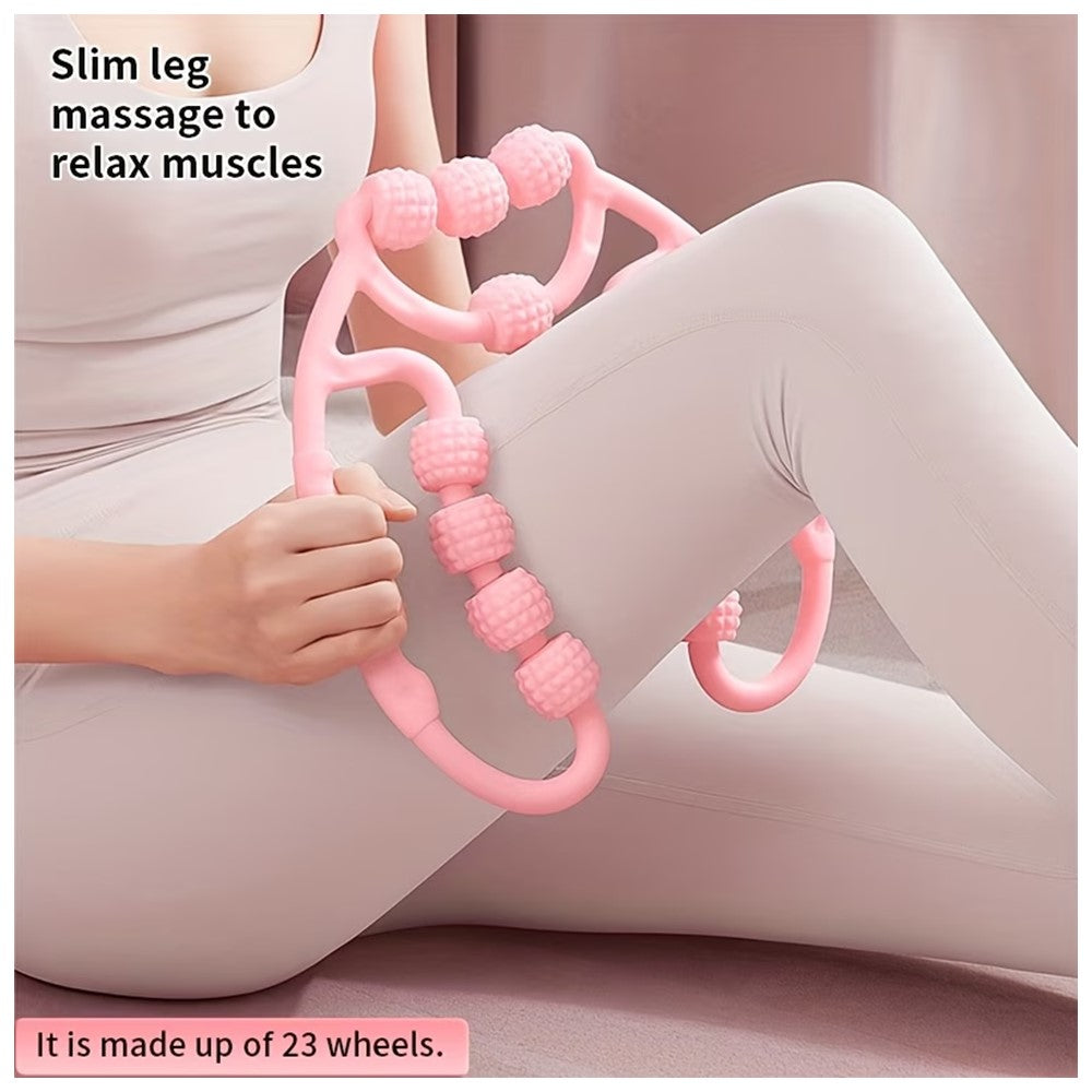 Masajeador de rodillo con anillo giratorio de 360 grados y mango ergonómico - Un dispositivo portátil para músculos y fascia, ideal para piernas, cintura, glúteos y espalda. Este masajeador de plástico es perfecto para atletas y uso diario.